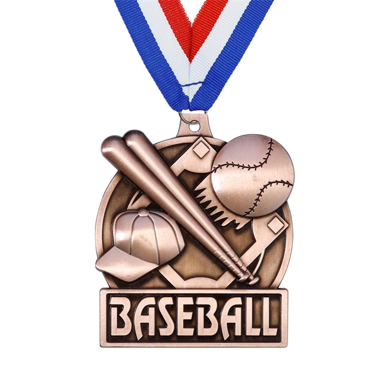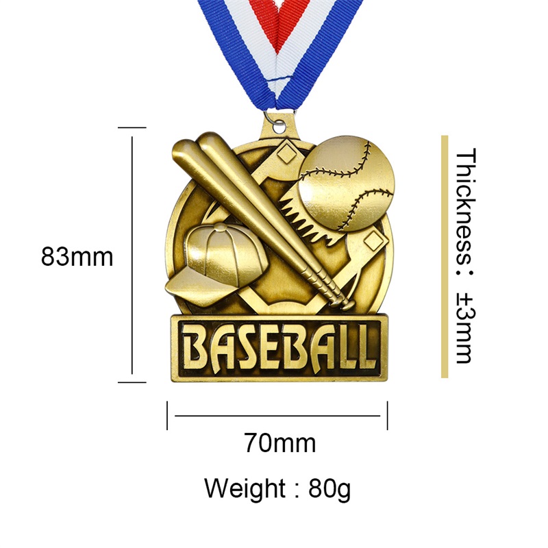 These medals, in antique gold, antique silver, and antique copper, feature a dynamic design with baseball bats, balls, and caps, plus bold "BASEBALL" lettering. They’re ideal for baseball tournaments, rewarding athletes and adding a vintage-sporty touch to sports award ceremonies.