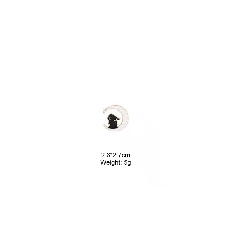 2 charming pins feature a white rabbit nested in a star (with a headband) and a black rabbit curled in a moon—soft celestial styling blends cute bunny charm with dreamy night-sky vibes. Perfect for adding whimsical flair to bags/jackets or collecting as cozy celestial keepsakes.