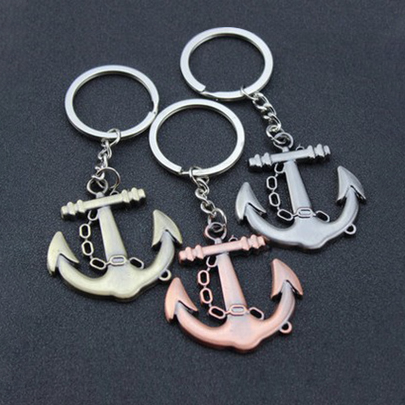 Multi-tone metal nautical anchor keychains