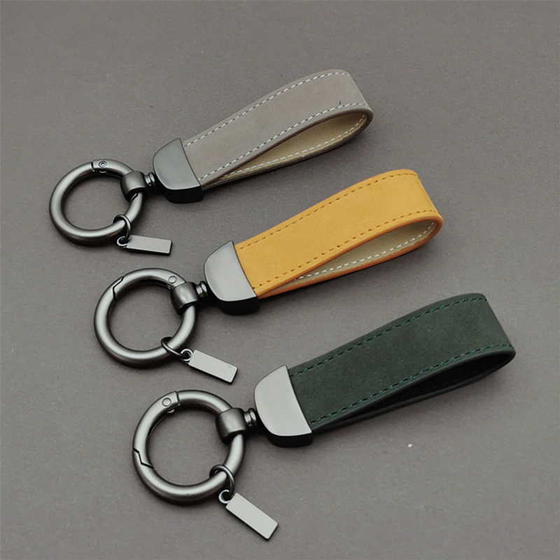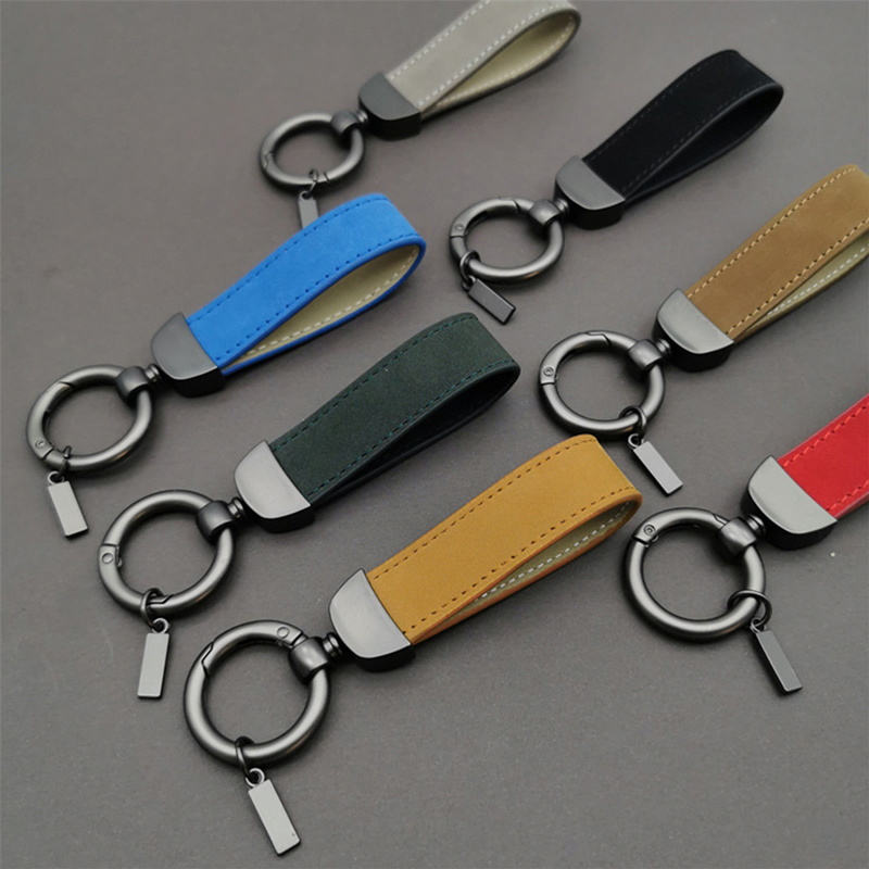 These multicolor leather metal keychains feature various hues like blue, black, brown, red, etc., with premium leather straps, sturdy metal clasps and rings, showcasing stylish designs and fine craftsmanship, ideal for organizing keys with a touch of fashion.