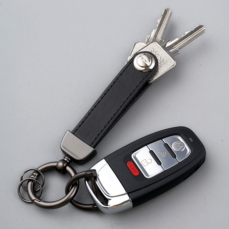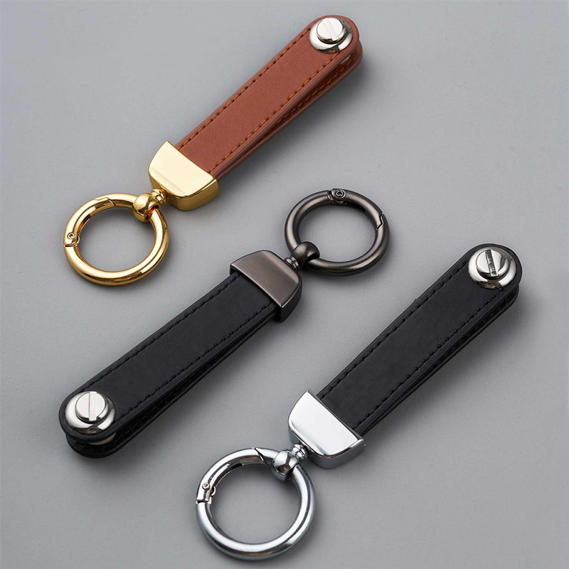 This keychain set features leather straps in brown, black, and black with gold, gunmetal, and silver hardware. With a sophisticated, versatile design, it’s ideal for professionals to organize keys daily, perfect for adding a touch of elegance to car or office keys, and suits both formal and casual settings.