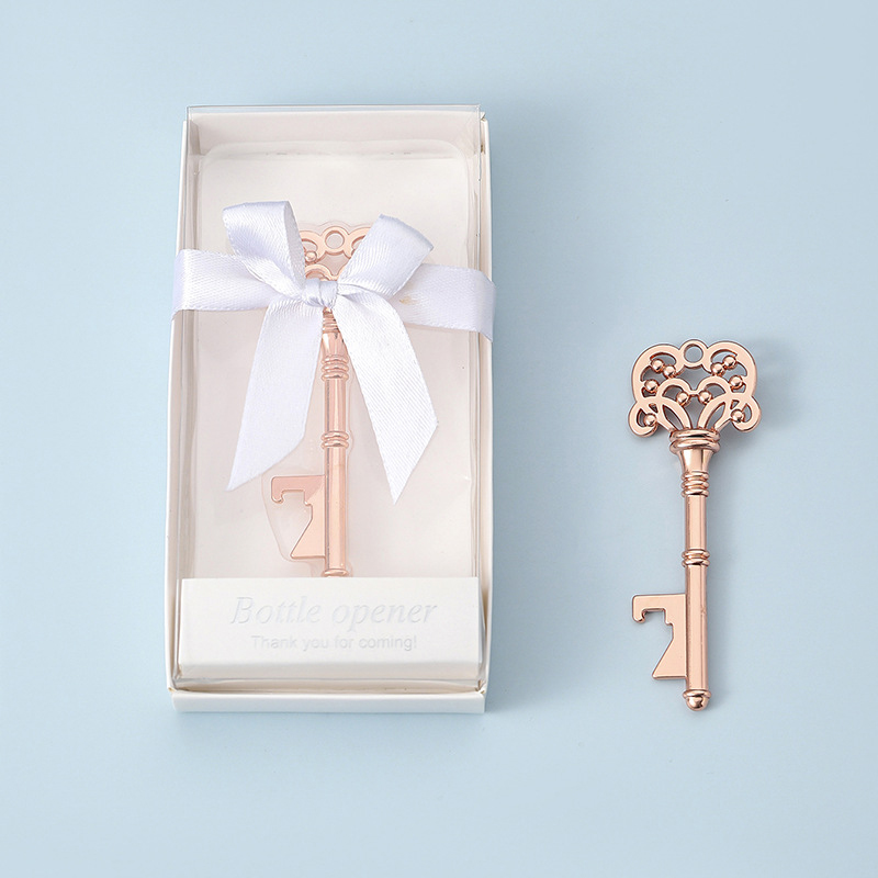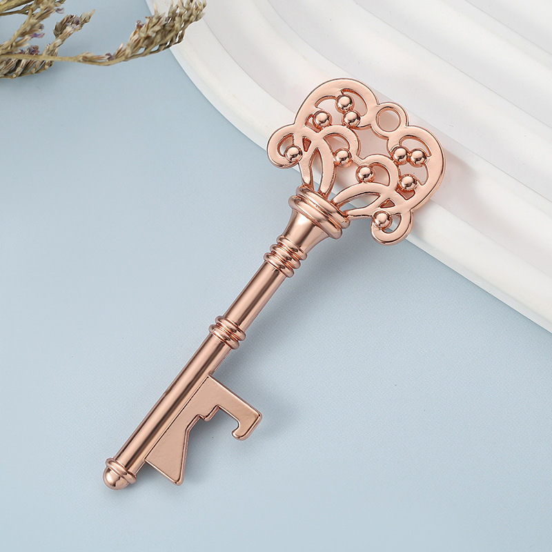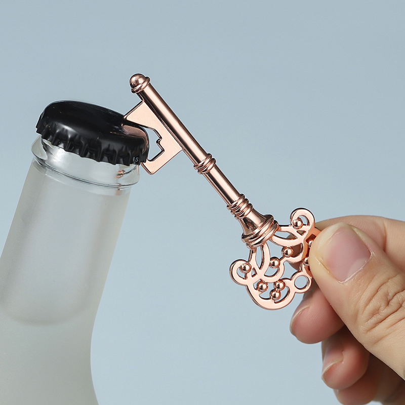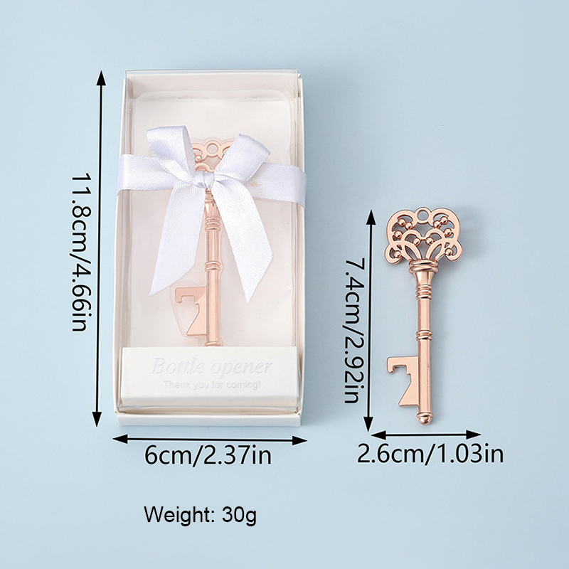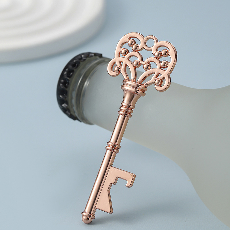 This 30g (7.4cm) rose gold opener mimics an intricately designed vintage key. It pops caps smoothly, blending elegant antique charm with modern functionality—ideal for fairy-tale weddings, vintage-themed parties, or a sophisticated gift for decor lovers.