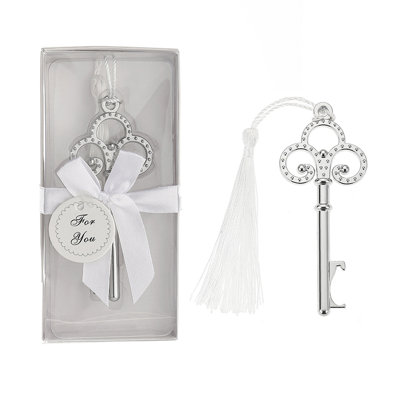 This 46g (10cm) opener mimics a decorative key (in rose gold/silver) with a tassel detail. Its intricate, curved handle design pops caps smoothly, blending vintage elegance with romantic charm—ideal for weddings, anniversaries, or a thoughtful gift for loved ones.