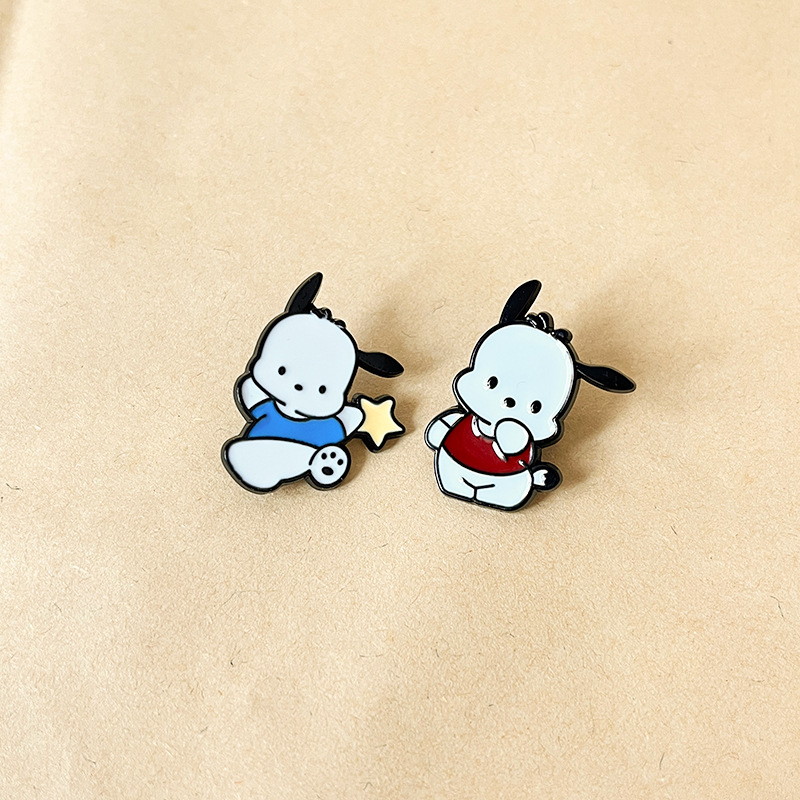 2 adorable Pochacco pins (star + sweet details) — glossy enamel with polished metal framing, durable & vibrant. Perfect for Sanrio fans to add cute flair to bags/jackets; ideal for daily wear or collectible decor.