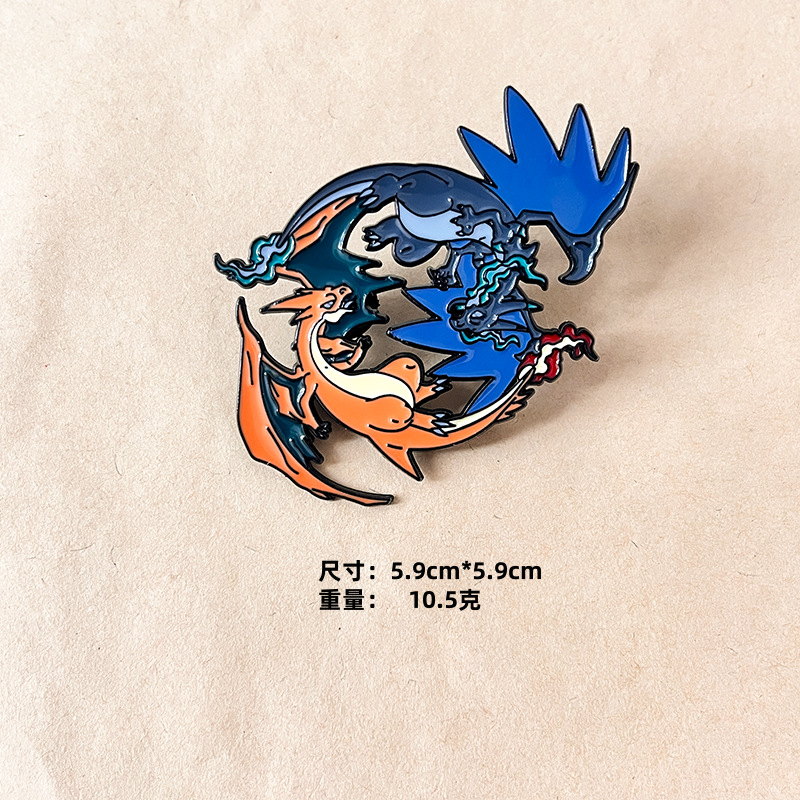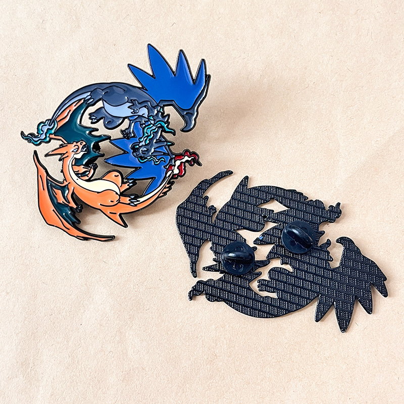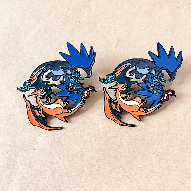Features iconic red (Charizard) and blue (Shiny Charizard) in a sleek, glossy enamel design. Ideal for Pokémon fans to add bold, nostalgic flair to bags/jackets—perfect for fandom styling or collectible dragon-themed accessory decor.
