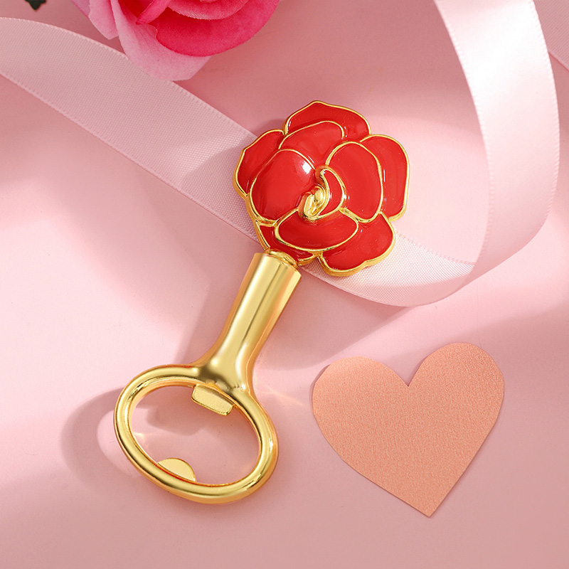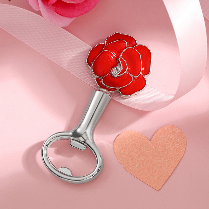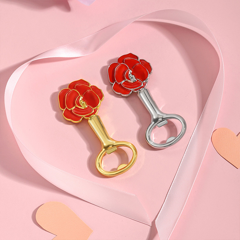 This 53g (9.6cm) opener features a vivid red enamel rose top (with petal details) paired with gold/silver handles. It pops caps smoothly, blending romantic floral charm with elegant style—ideal for weddings, Valentine’s parties, or a heartfelt gift for flower-loving friends.