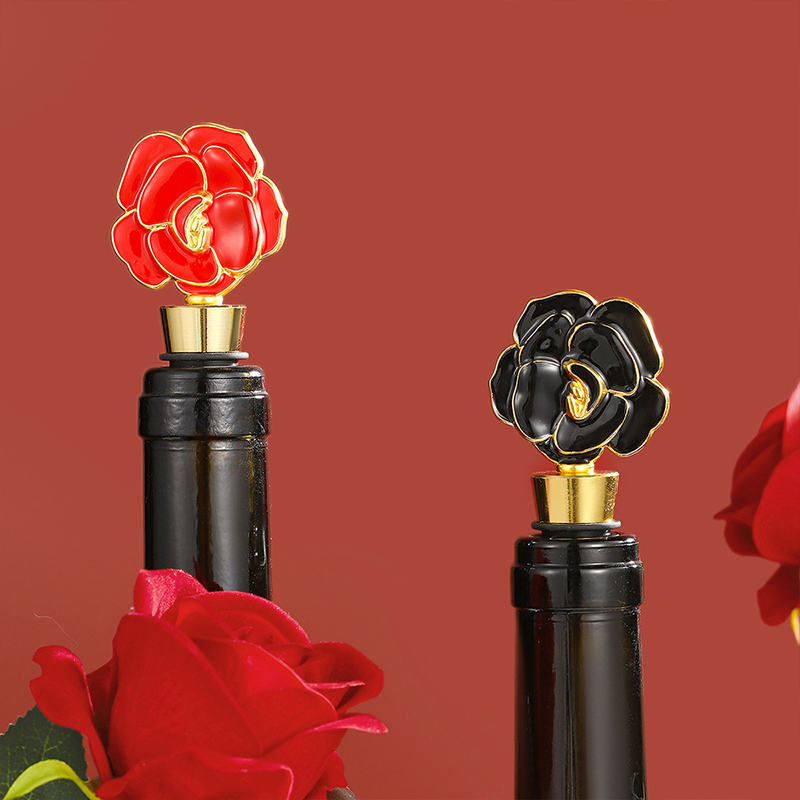 This 44g stopper is shaped like a vivid rose (in red/black/pink/white hues, trimmed with gold). Its silicone grip seals wine bottles tightly, doubling as an elegant decor piece—ideal for romantic occasions, gifting, or adding a floral touch to wine collections.