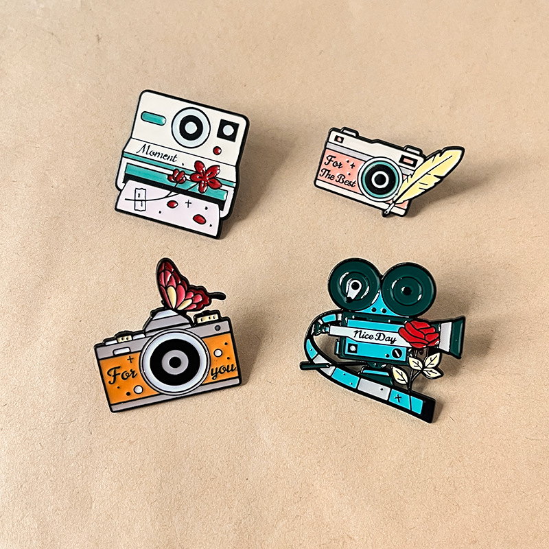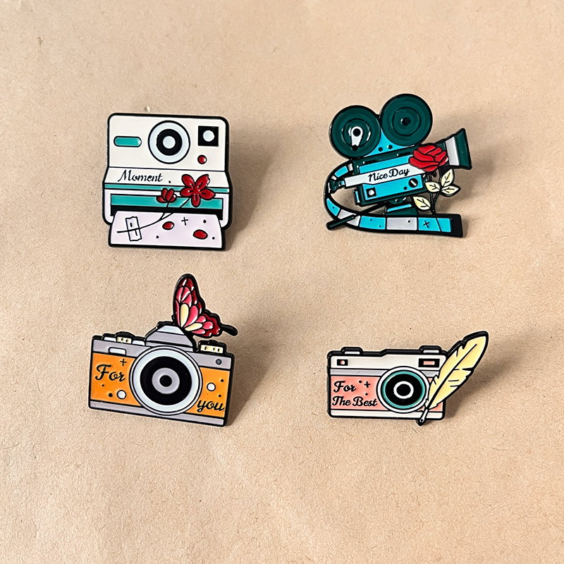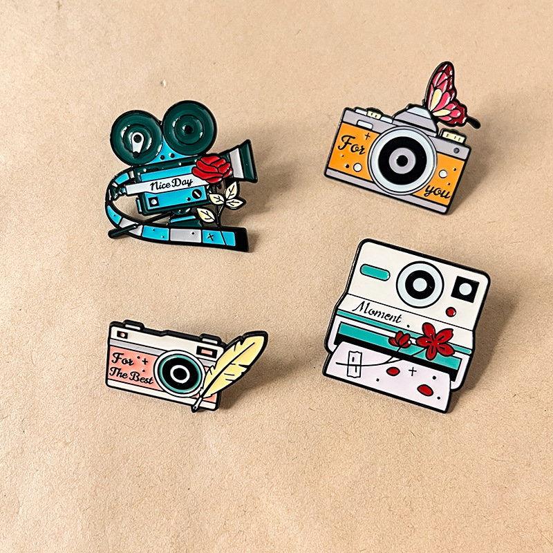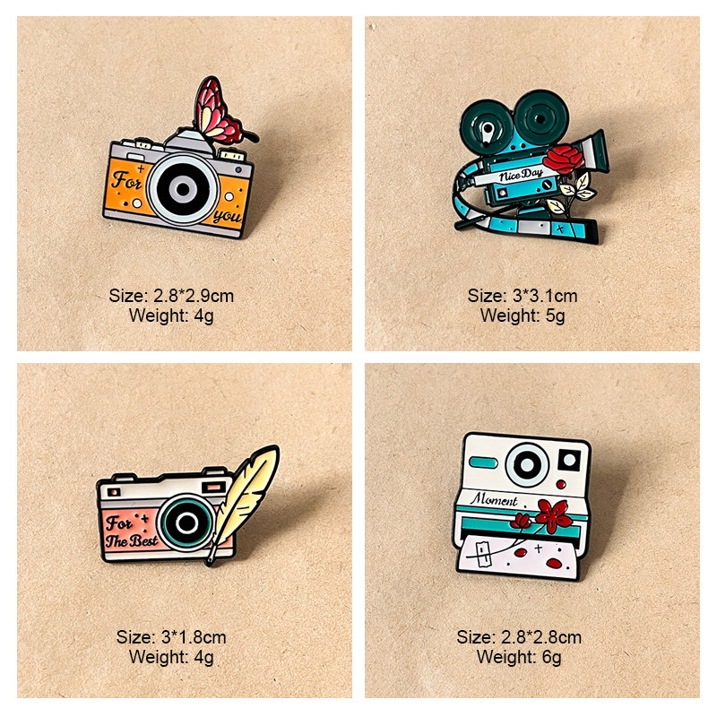 This retro camera & film pin set has 4 vintage designs (cameras, film reel) with sweet phrases—nostalgic, creative charm. For photography lovers, it adds whimsical flair to bags/jackets, ideal for daily styling or infusing outfits with artsy, nostalgic media personality.