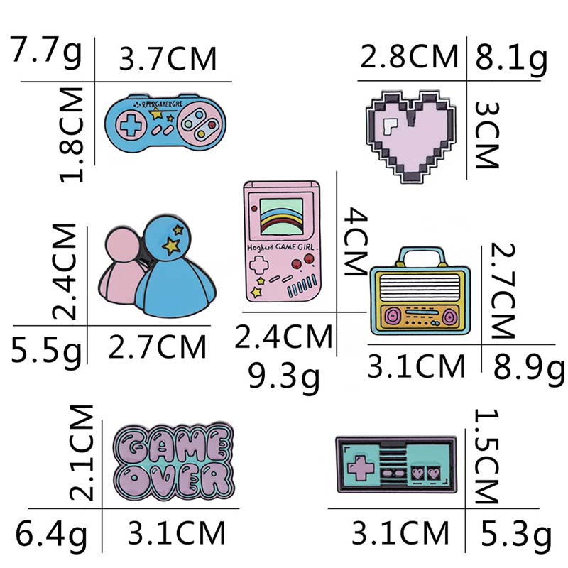 This retro gaming pin set has 6 playful designs (pixel heart, game console, controller)—vibrant, nostalgic game charm. For gamers, it adds quirky flair to bags/jackets, ideal for daily styling or charming, retro game-themed accessory decor.