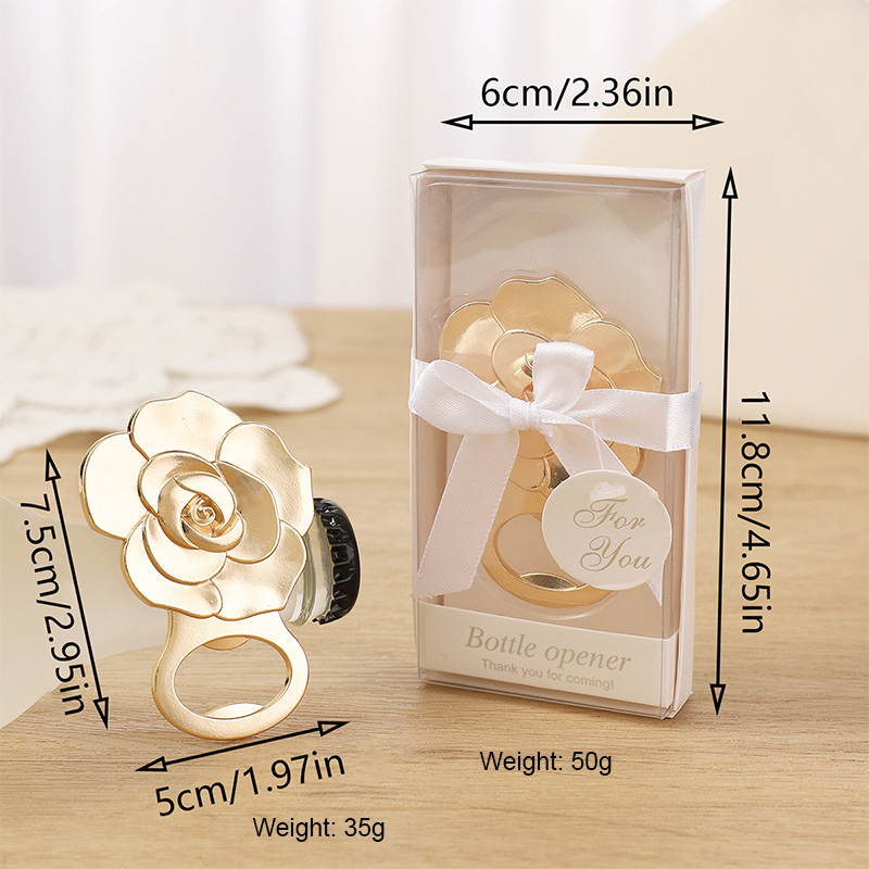 This 35g (7.5cm) gold opener features a detailed 3D rose design. It smoothly removes bottle caps, merging elegant floral charm with practicality—ideal for gifting, using as a wedding favor, or adding a romantic touch to barware.