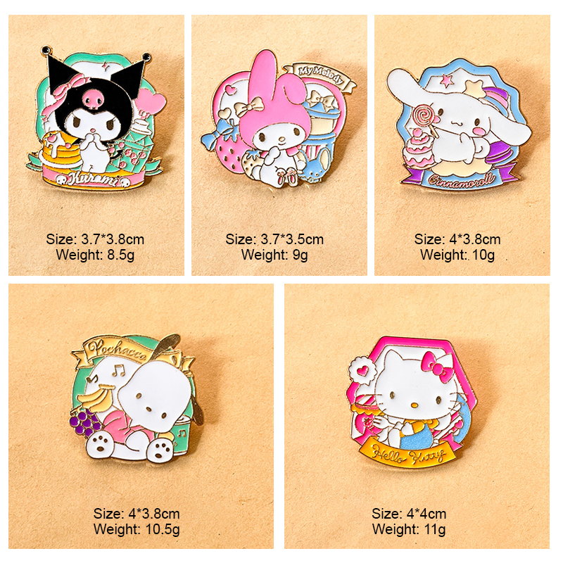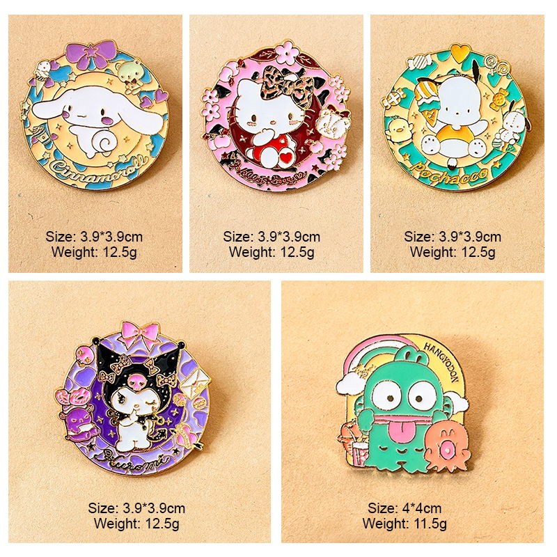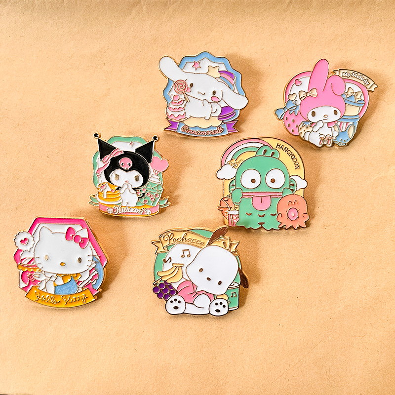 These Sanrio enamel pins boast the adorable cartoon shapes of iconic characters (Pochacco, Cinnamoroll, Hello Kitty), paired with sweet details like desserts or rainbows. They decorate caps and bags, perfect for Sanrio fans to add sweet, playful charm to their accessories.