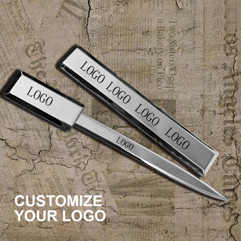 This silver letter opener boasts a sleek, modern design paired with a sharp, durable metal blade. Its protective sheath ensures safe storage, while the smooth, ergonomic handle enables effortless envelope slicing—ideal for daily desk use or gifting.