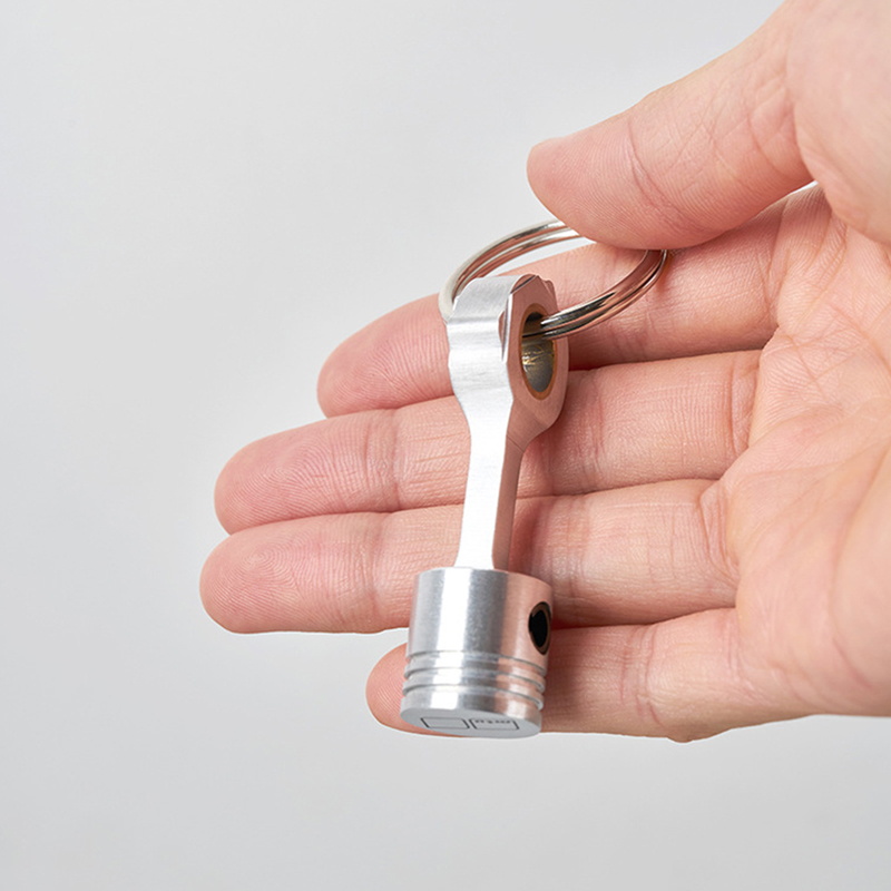 Crafted from metal and designed like an engine piston, this keychain exudes a mechanical, industrial vibe. Perfect for car lovers, it organizes keys while adding an automotive flair, fitting seamlessly into daily routines and motorsport-centric lifestyles.