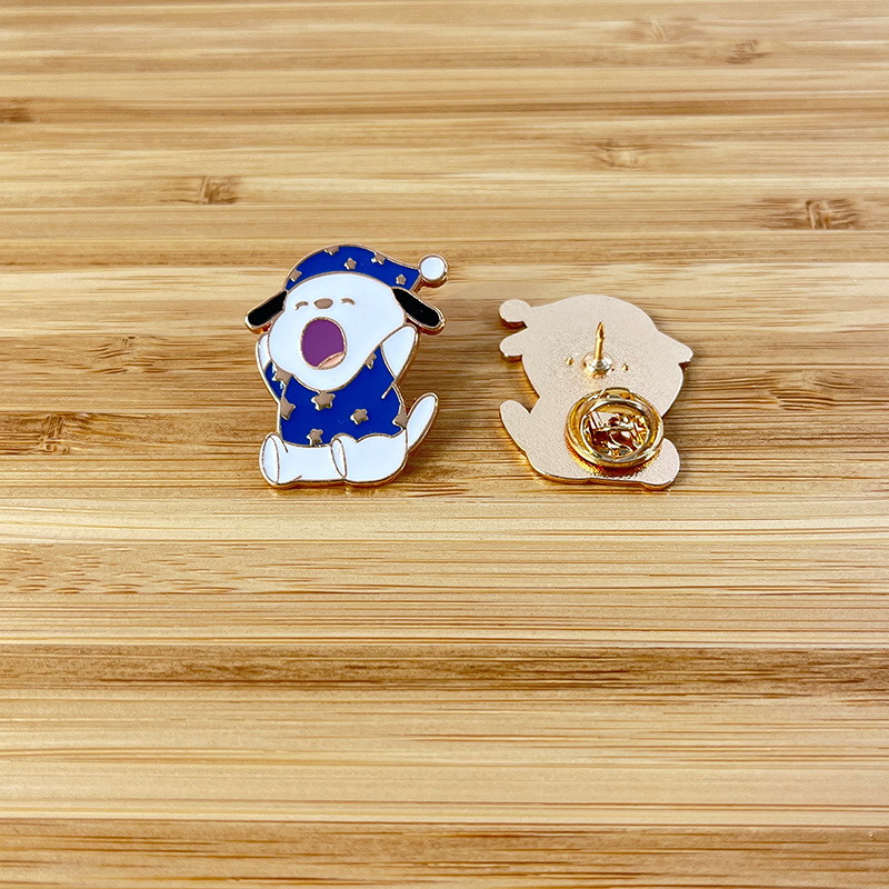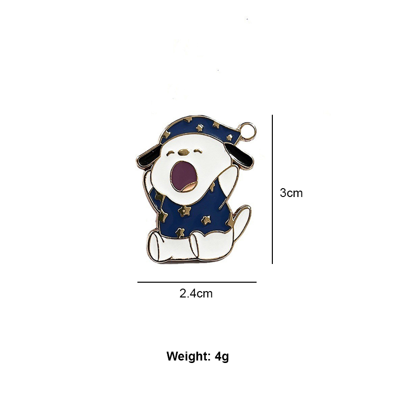 This charming pin features a cozy pup in a star-patterned nightcap, yawning wide—vibrant blue, gold accents, and playful expression amplify its cuddly, whimsical vibe. Perfect for adding sweet flair to bags/jackets or displaying as a cute pet collectible.