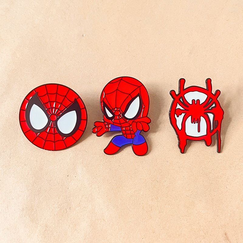Features 3 vivid designs (mask, chibi figure, web logo) with glossy enamel. Perfect for Marvel fans to add bold, nostalgic flair to bags, jackets, or lanyards—ideal for fandom styling or superhero-themed accessory decor.