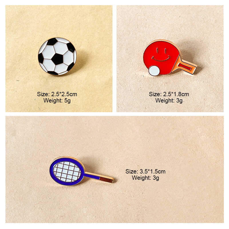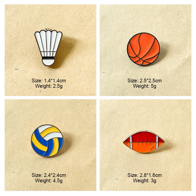 This sports pin set includes 5 glossy enamel designs (badminton, soccer, football, basketball, volleyball)—vibrant nods to popular athletics. For sports fans, it adds themed flair to bags, jackets, or lanyards, ideal for athletic styling or hobby-focused accessory decor.