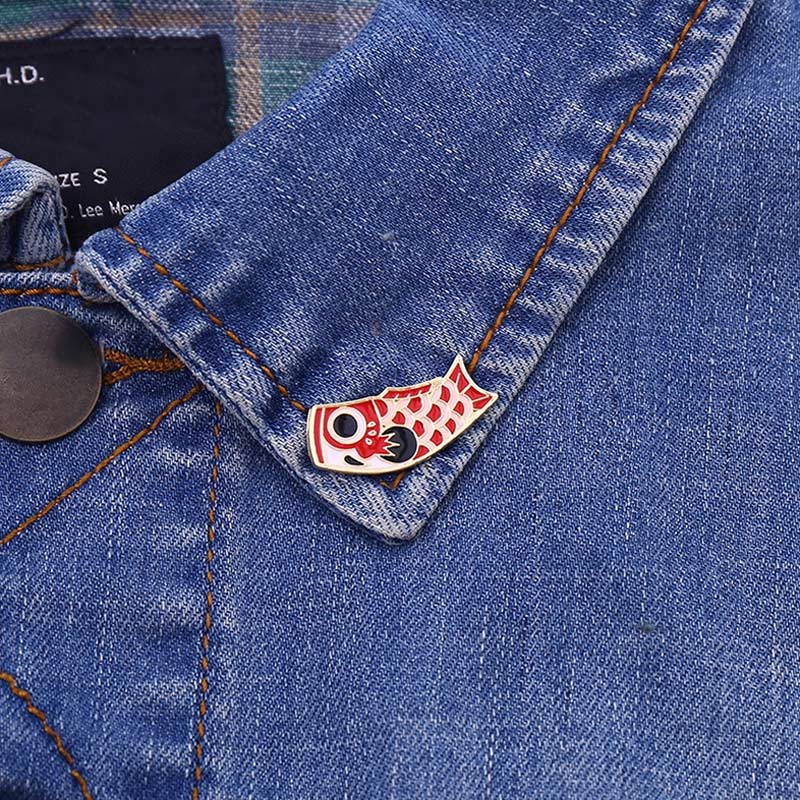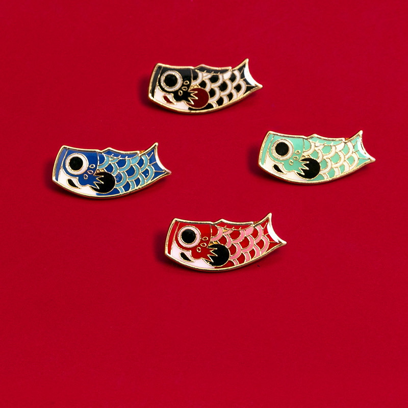 Features vibrant, traditional koi fish shapes (red, blue, etc.) with glossy enamel, symbolizing good fortune. Ideal for adding cultural charm to jackets, bags, or lanyards—perfect for daily styling or cultural accessory accents.