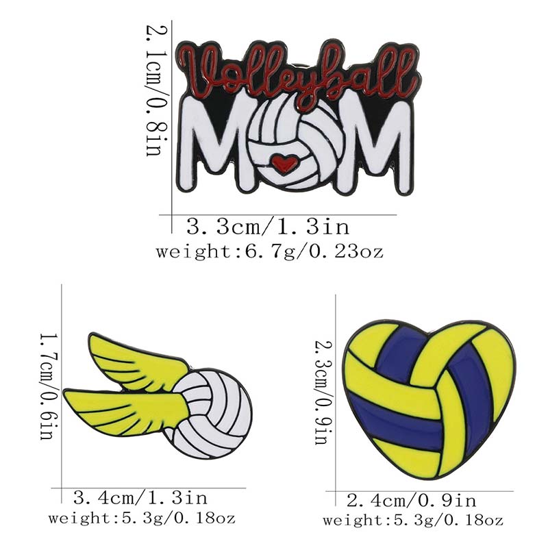 This volleyball pin set has 3 vibrant designs (heart ball, winged volleyball, "Volleyball Mom")—sporty, heartfelt charm. For fans/moms, it adds playful flair to bags/jackets, ideal for game-day spirit or daily styling to show volleyball love.