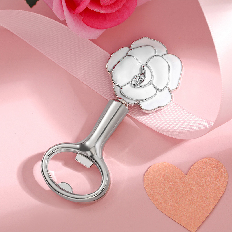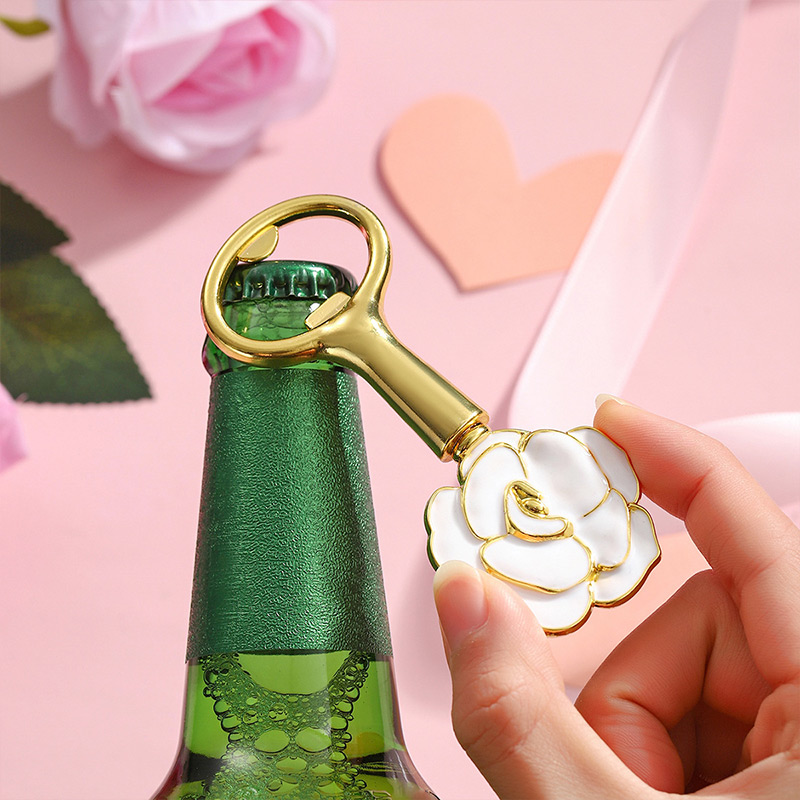 This 53g (9.6cm) opener features a sleek white enamel rose top (with metallic trim) paired with gold/silver handles. It pops caps smoothly, blending delicate, elegant floral charm with minimalist style—ideal for bridal showers, tea parties, or a refined gift for classic-aesthetic lovers.